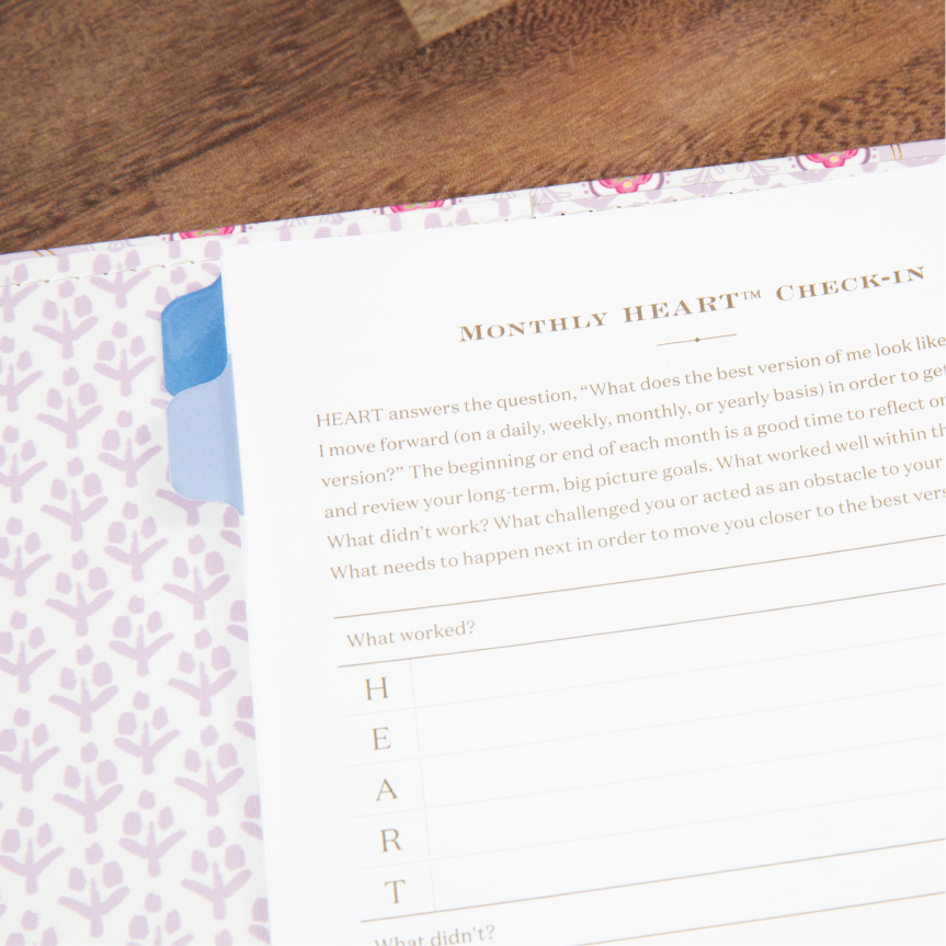 • Following each monthly spread, there are five weekly spreads and a monthly HEART check-in worksheet